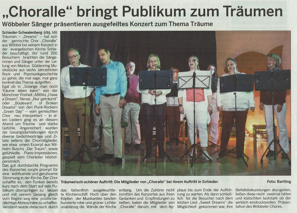 - Konzert „Choralle dreaming“ in Wöbbel (6. Oktober 2018)