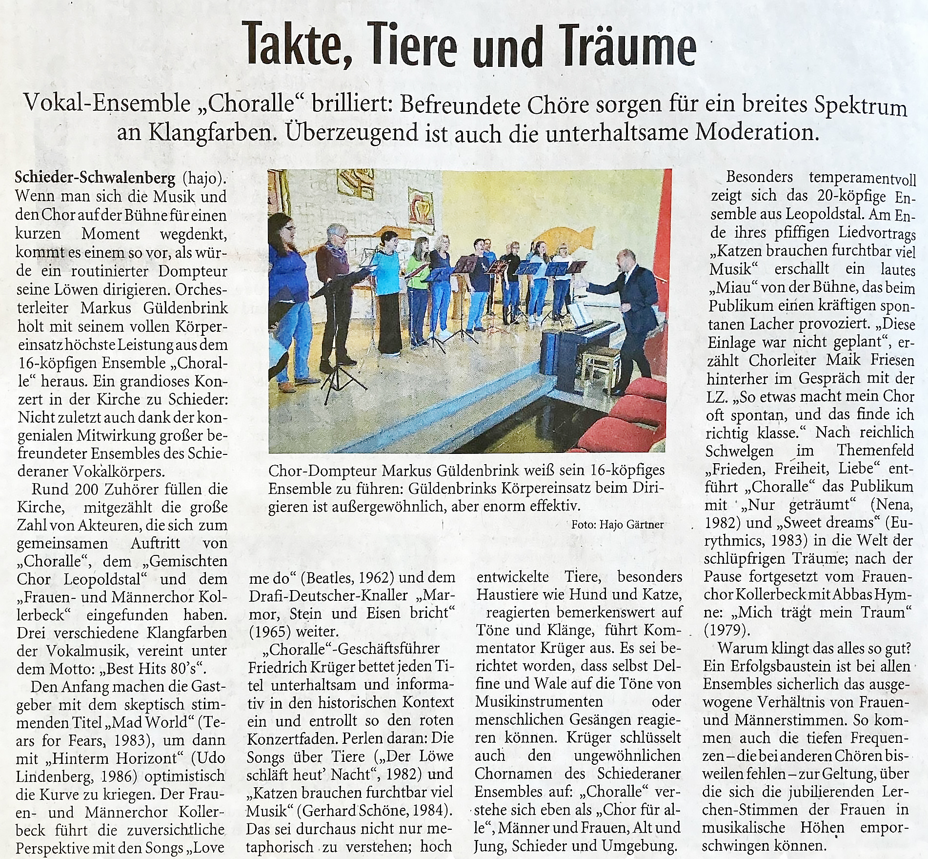 (Gemischter Chor Leopoldstal, Männer- + Frauenchor Kollerbeck, s. „Choralle brilliert“ www.LZ.de vom 27.09.2023 © Copyright Lippische Landes-Zeitung)
