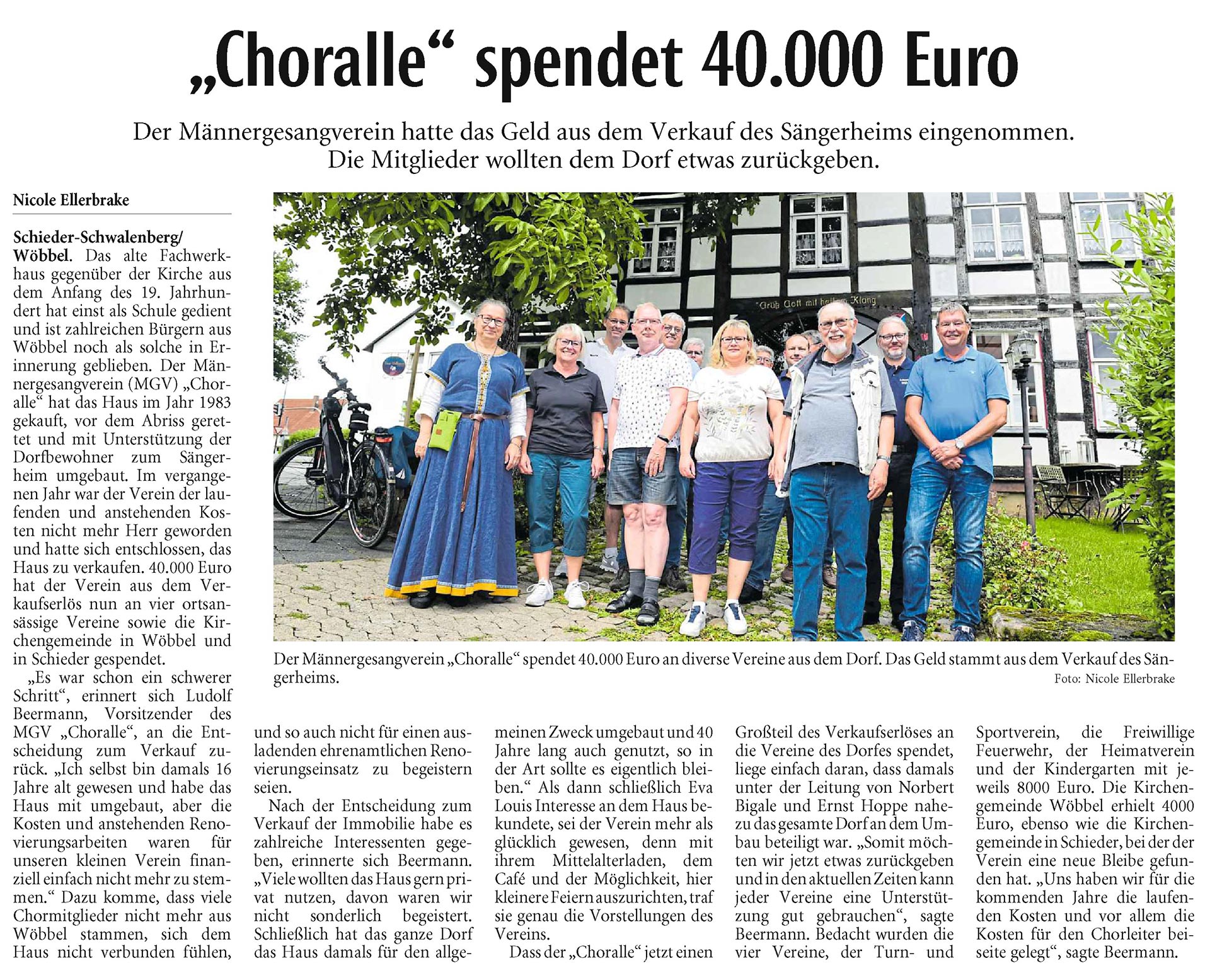 „‚Choralle‘ spendet 40.000 Euro“ – LZ-Bericht vom 15.08.2023